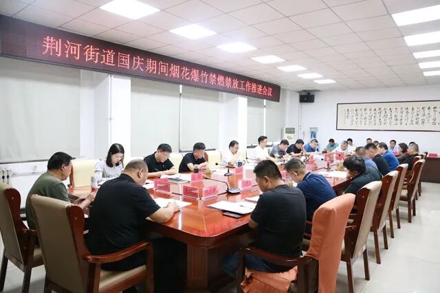 9月29日上午,荆河街道召开国庆期间烟花爆竹禁燃禁放工作推进会议。街道全体领导干部,各社区管委会书记,相关工作岗负责人参加会议。