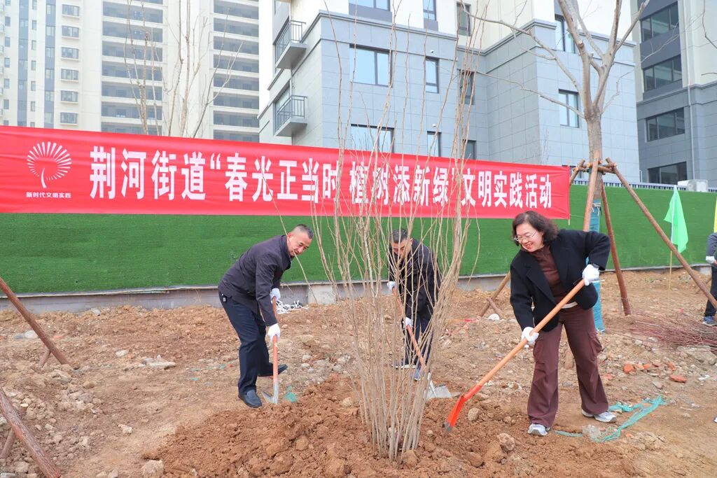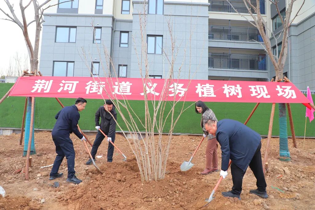 3月12日,荆河街道开展植树节义务植树活动,街道全体领导干部,各片区综合党委书记,相关工作岗、社区、企业志愿者共计50余人参加活动。
