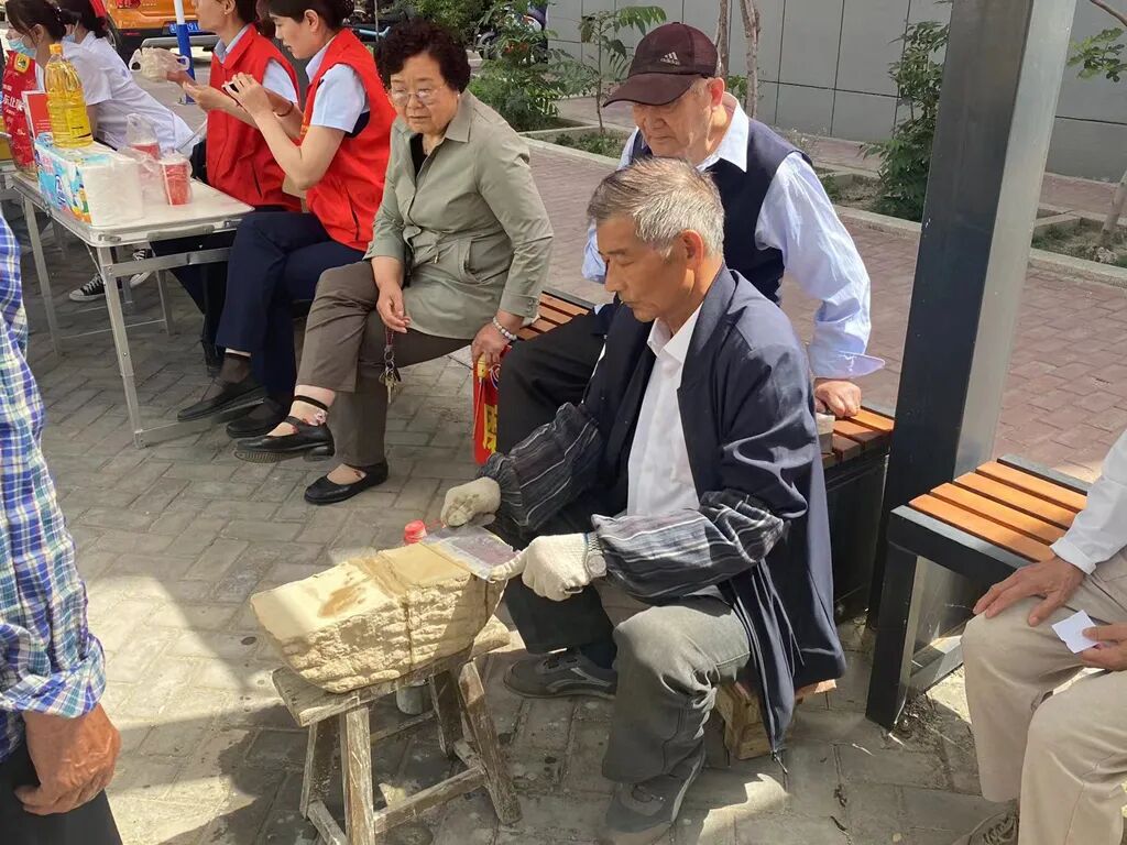 晨光初绽,四方城小区的广场已然生机勃勃。社区志愿者精心设置的服务摊位呈现一道道热闹非凡的景色:医疗保健区的白大褂们细致地为老人建立健康档案,与居民群众心深度交流血管疾病相关知识;便民生活区的磨刀工匠时而弓腰细研,时而举刃试锋,让20余把焕然新生的刀具见证匠心传承;而在最受瞩目的爱心理发区,志愿理发师们手中的剪刀翻飞作响,为银发长者剪去烦忧,理出精气神。