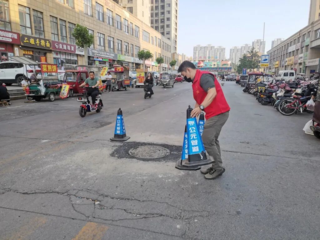 网格员先是对整个老街区进行了逐一摸排、统计坑洼数量,并详细记录塌陷位置及破损情况;然后标记重点位置汇总作成简报上报网格长,经过上报,简化申报批复流程,启动快速响应机制,协调专业施工人员根据简报及路面实况确定维修方案、统一采购施工用料,并第一时间开赴现场对该路段破损路面开展维修作业。