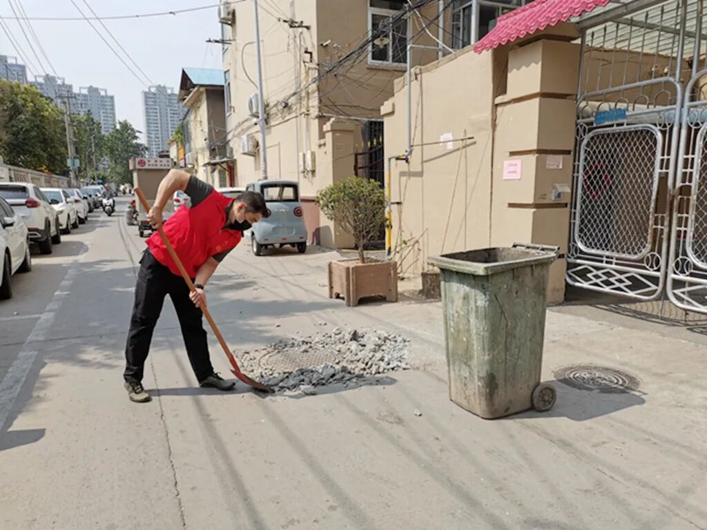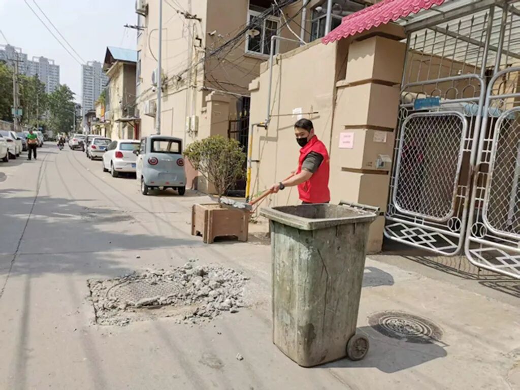在街区日常巡查过程中,颠簸的路面给网格员宋旻昊留下了深刻的印象,时常听到周围居民的抱怨:“这老路比我年龄都大”“大坑套着小坑,连环好几个,躲都躲不开”“下点雨就积水,稍有不慎就得溅一身”。声声抱怨都记在他的心里,暗暗笃定要把这件老百姓的“心头大患”解决掉。