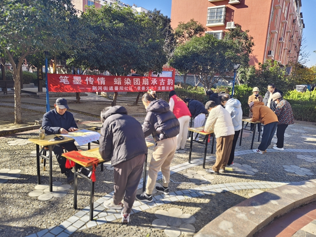 11月25日,荆河街道蕃阳社区新时代文明实践站孝善文化广场内墨香弥漫,“笔墨传情 团扇福卡承古韵”书法活动顺利举行。活动吸引众多社区居民积极参与,大家以笔会友、以墨传情,在书写中感受传统文化魅力,传递邻里温情。