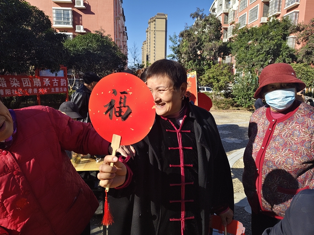 在随后进行的团扇与福卡题字环节中,居民们将美好祝愿融入字里行间,以笔墨抒发对幸福生活的向往。活动最后,大家纷纷展示作品、合影留念,现场洋溢浓浓的成就感与社区归属感。