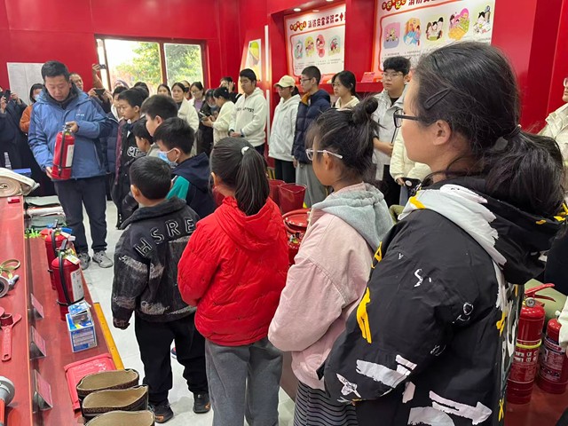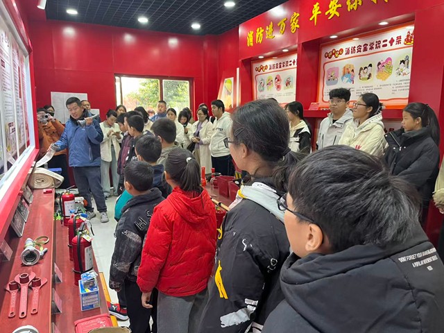 活动邀请消防专业人员现场授课。首先,孩子们在老师带领下参观小区消防体验室。室内陈列了多种灭火器、防火服、防烟面罩、逃生绳和逃生应急标志等器材,老师用通俗易懂的语言逐一介绍其功能和使用场景,“灭火器压力表指针在绿色区域才有效”“防火服能隔绝高温,保护救援人员”……孩子们围在展品前,听得津津有味。