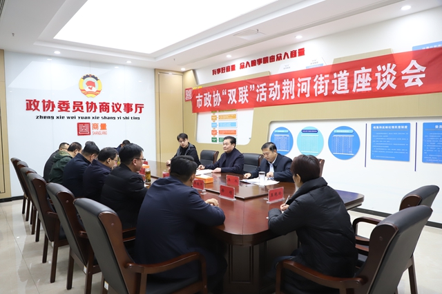 随后,在荆河街道政协政协议事厅召开座谈会。街道党工委书记李启顺汇报了街道经济社会发展情况;党工委副书记、政协工作室主任马君汇报了街道政协工作开展情况;与会政协委员分别进行了发言。