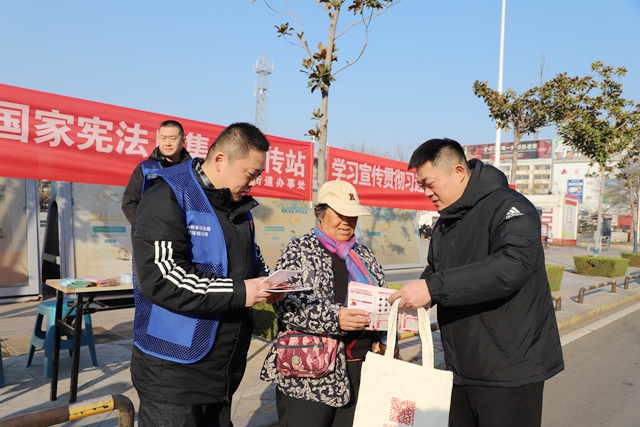 2025年12月4日,我国迎来第十二个“国家宪法日”,主题为“学习宣传贯彻习近平法治思想,推动宪法深入人心”。为进一步将习近平法治思想融入基层治理实践,切实弘扬宪法精神、维护宪法权威,12月4日上午,荆河街道组织司法所、平安法治办、片区综合党委等职能部门,在人员流动密集的火车站广场开展了“12·4”国家宪法日专题普法宣传活动,让法治力量直达群众身边,街道党工委副书记马超参加宣传活动。