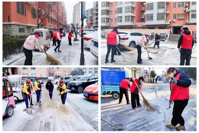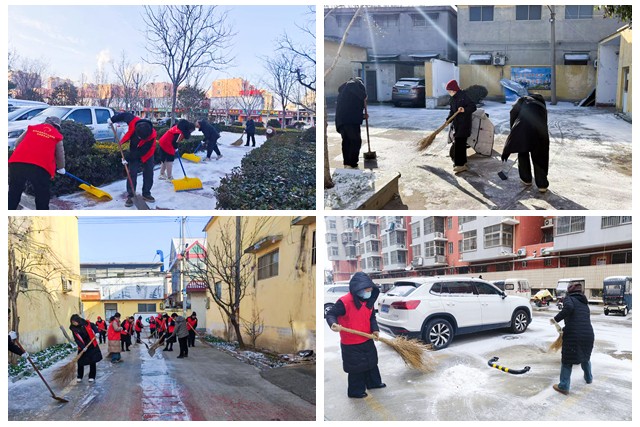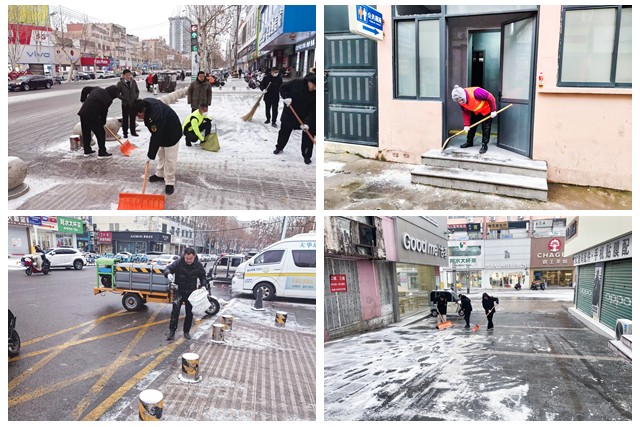 活动中,街道统一指挥,明确分工,划定责任区域,重点聚焦主次干道、交通路口、小区出入口、学校、农贸市场等人流车流密集区域。尽管天气严寒,但全体参与人员热情不减,手持铁锹、雪铲、扫帚等工具,齐心协力、配合默契,全力清除路面积雪与暗冰,在忙碌中传递着温暖与责任。