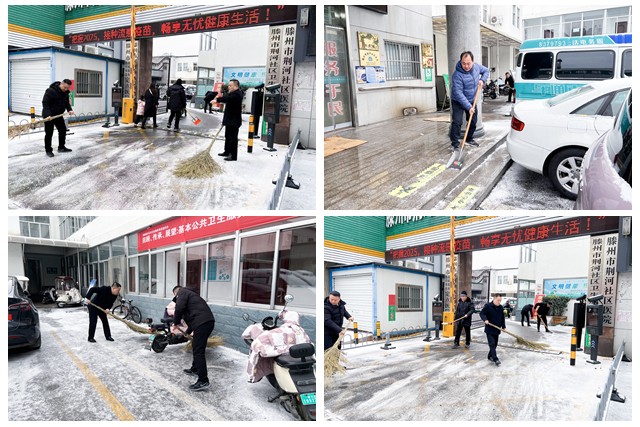 1月20日,受寒潮降雪影响,街道辖区道路出现积雪结冰现象。为确保交通顺畅与市民出行安全,荆河街道党工委、办事处立即启动应急预案,组织街道机关干部、社区工作者、网格员、物业人员及新时代文明实践志愿者,在街道辖区开展扫雪除冰保畅通行动。