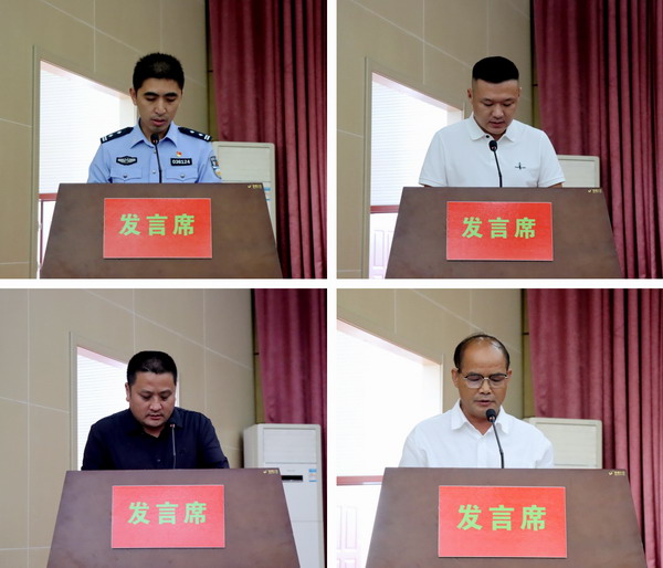 界河派出所所长张峰、界河办事处党总支书记王绪州、唐楼村党支部书记赵广涛、陈马厂村党支部书记陈增如依次上台作大会发言,表达了坚决落实党委、政府决策部署,全力打好“三秋”生产和秸秆禁烧攻坚战的坚定决心。