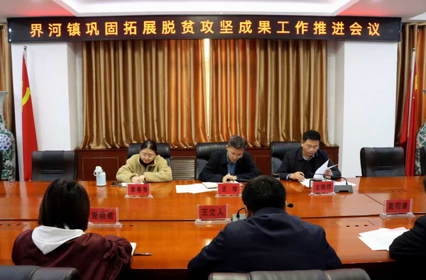 界河镇在三楼会议室召开巩固拓展脱贫攻坚成果工作推进会议。市农业农村局党组成员、副局长王珍,镇领导王立人、高明康、谢晓君及相关部门负责同志参加会议。党委副书记、镇长龙晓辉主持会议并作工作部署。