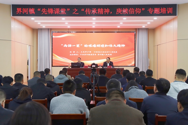 为深入学习贯彻习近平总书记关于传承和弘扬“两弹一星”精神的重要论述,引导全镇党员干部深刻领悟其核心内涵与时代价值,并将其转化为推动界河镇高质量发展的强大动能,11月14日,界河镇邀请中国酒泉卫星发射中心原政委王兆宇少将,在镇党群服务中心二楼会议室作“传承精神,庚续信仰”先锋课堂专题培训,培训以“‘两弹一星’的艰难辉煌和伟大精神”为主题。全体领导干部、机关干部,各镇直部门负责人,各中小学校长、幼教主任,各村党支部书记参加培训,党委书记王学焱主持培训并讲话。