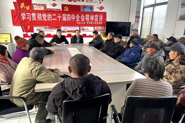 滕州市总工会、市劳模工匠宣讲团成员张岱超、邱士文来界河镇辖区工会联合会开展学习贯彻党的二十届四中全会精神宣讲。人大副主席李广贺及相关部门负责同志陪同活动。
