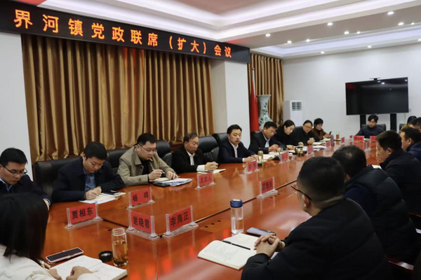 1月12日,界河镇在三楼会议室召开党政联席(扩大)会议。全体领导干部、各办事处党总支书记参加会议。党委副书记、镇长龙晓辉主持会议,党委书记孙然作会议讲话。