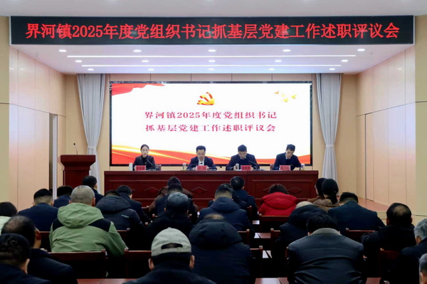 1月30日,界河镇在党群服务中心二楼会议室召开2025年度党组织书记抓基层党建工作述职评议会。全体领导干部,各办事处党总支书记,机关、镇直党支部书记,市派第一书记,“两新”组织党支部书记,各村党支部书记参加会议。党委副书记、镇长龙晓辉主持会议,党委书记孙然作会议讲话。
