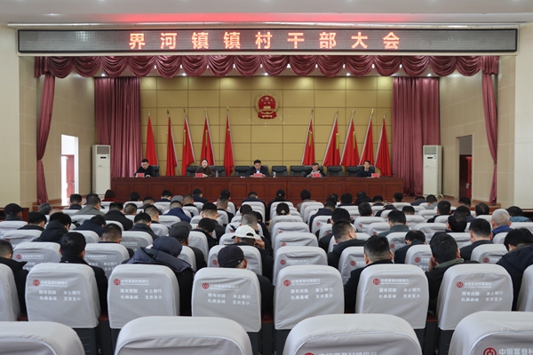 2月14日,界河镇在二楼报告厅召开镇村干部大会。全体领导干部、全体机关干部、镇直部门负责人,市派第一书记,各村党支部书记参加会议。党委副书记、统战委员、政协委员联络室主任史宝瑞主持会议,党委副书记、镇长龙晓辉作会议讲话。