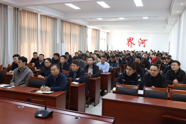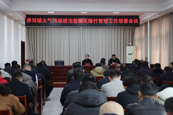 界河镇在四楼会议室召开大气污染防治暨烟花爆竹管控工作部署会议。
