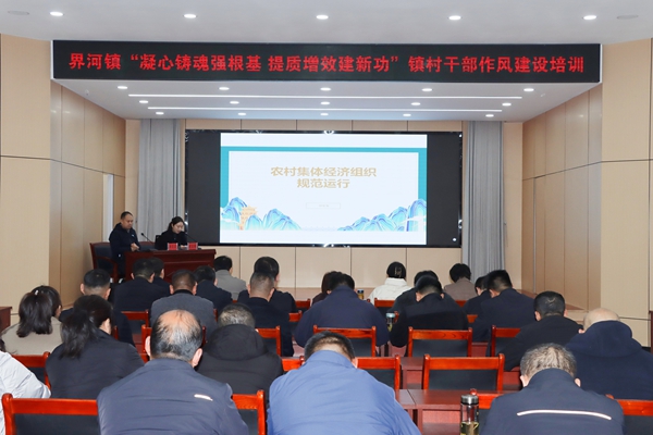 2月24日,界河镇在党群服务中心二楼会议室举办“凝心铸魂强根基提质增效建新功”镇村干部作风建设培训班。全体领导干部、机关干部,各村党支部书记及市派第一书记参加培训。培训由党委副书记、统战委员、政协委员联络室主任史宝瑞主持。