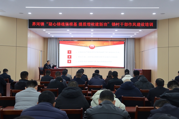 2月24日,界河镇在党群服务中心二楼会议室举办“凝心铸魂强根基提质增效建新功”镇村干部作风建设培训班。全体领导干部、机关干部,各村党支部书记及市派第一书记参加培训。培训由党委副书记、统战委员、政协委员联络室主任史宝瑞主持。