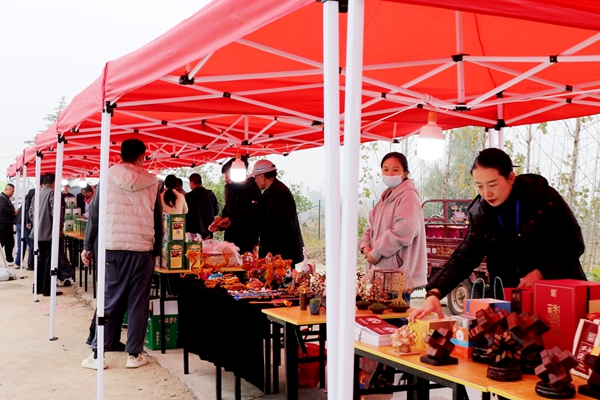 为延伸赛事效益,界河镇创新推出“金翅集团赛鸽探视+滕州文旅融合”特色活动,将单一体育赛事升级为集竞技观赛、文化体验、休闲消费于一体的文旅嘉年华。在赛事公棚打造综合功能区,现场设置非遗展示区,松枝鸟等传统手工艺精彩亮相;展销界河马铃薯、冰淇淋萝卜等特色农产品,让来宾品尝地道薯乡味道。同时设立一站式服务点,提供参赛办理、交通引导、酒店入住等全流程服务,全力提升活动体验。
