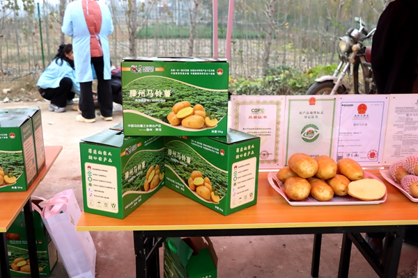 ▲展销滕州马铃薯等界河特色农产品