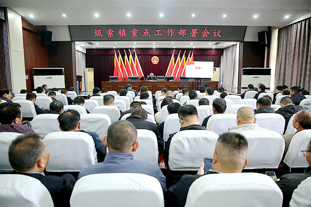 10月20日,级索镇在四楼会议室召开重点工作部署会议。党委副书记孙艳波主持会议并讲话。全体领导干部,全体机关干部,市派第一书记,各村党支部书记参加会议。