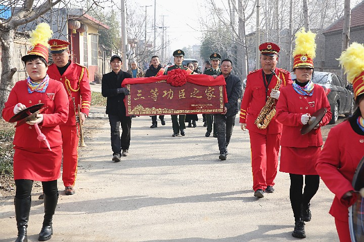 为弘扬新时代拥军优属光荣传统,增强军人的荣誉感和军属自豪感,1月15日,滕州市军休所副所长赵芳,军休所办公室主任张雷,滕州市武装部政工科主任姜润红来级索镇时庄村走访慰问,为荣立三等功的现役军人家庭送来喜报。级索镇党委委员、武装部长李振及相关部门负责同志参加活动。