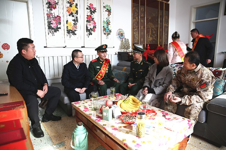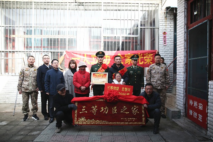 慰问组一行到现役军人王恒兴家中,为立功军属送去喜报和慰问金,向他们表达了崇高的敬意及热烈的祝贺。衷心感谢他们为国家、为部队培养了优秀人才,希望他们继续鼓励孩子在保家卫国的神圣岗位上再接再厉,积极进取,为家乡争光。