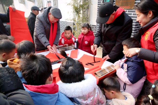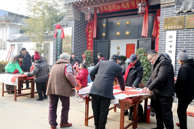 村民们围立观赏,纷纷上前定制心仪的春联,书画家们耐心询问需求,手把手指导书画爱好者握笔运墨,现场互动热烈。短短数小时,百余幅春联、福字全部免费赠予村民,将文化温情与新春祝福送到千家万户。