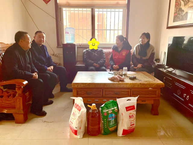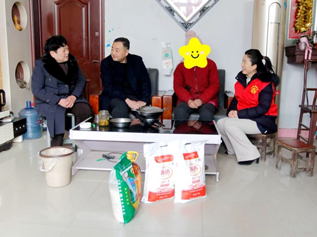 中国人寿滕州支公司副总经理乔友亮与级索镇妇联负责人李波一同带队走访,为低收入“两癌”患病妇女送去米面油等生活物资,以实际行动传递党和政府的关怀与社会温暖。