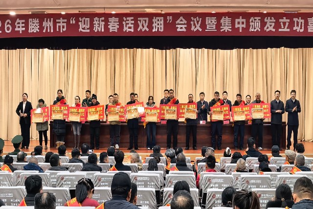 新春将至,喜报传捷。2 月 2 日,滕州市 2026 年 “迎新春话双拥” 会议暨立功喜报集中颁发活动圆满举办,级索镇再迎双拥工作喜讯,辖区 9 名现役军人凭借在军营的优异表现荣立三等功。镇党委副书记、镇长赵素贤现场为立功军人家属颁发喜报,把党和政府的关怀与敬意送到军属心坎上,以实际行动诠释新时代乡镇拥军优属的责任与担当。
