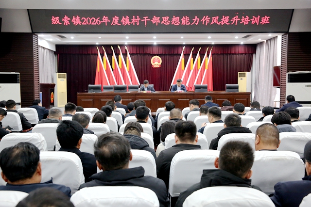 新春启新程,实干开新局。为全面提振镇村干部精气神,锤炼过硬作风本领,确保各项工作高起点开局、高质量推进,2月24日,级索镇举办镇村干部思想能力作风提升培训班。全体领导干部,机关干部,市派“第一书记”,各村支部书记参加会议。