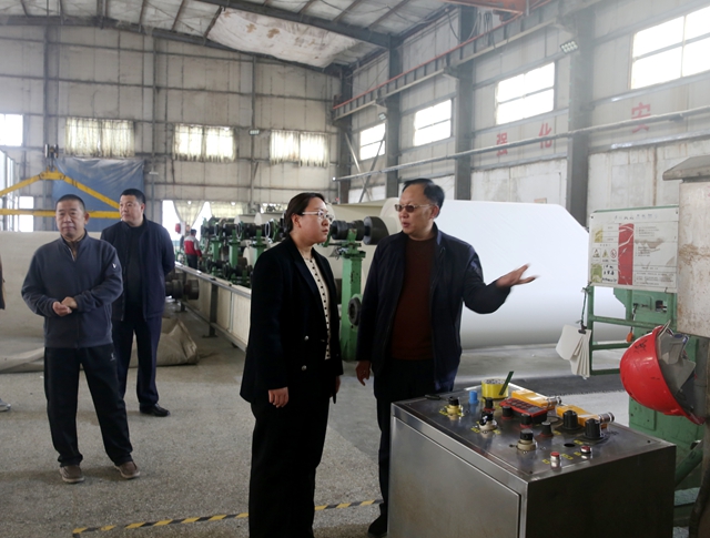 调研组一行先后来到龙彩建材、中台蠕墨、华闻纸业、永信研磨公司,实地查看了企业生产车间及仓储区域,详细了解各重点项目建设进度、生产工艺流程及安全生产情况。