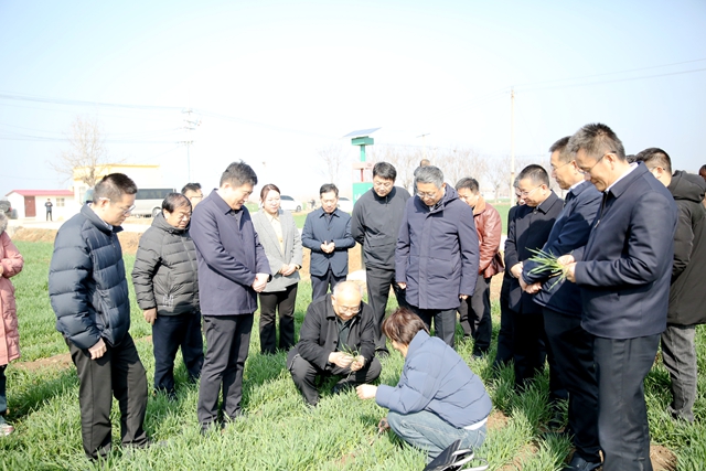 3月6日,农业农村部农田中心主任吴洪伟,农田建设司高标处副处长宋昆,山东农业大学教授王振林一行来滕州市级索镇开展春季小麦生产帮包指导活动。省农技推广中心党委书记、主任孙雨生,枣庄市农业农村局党组成员、副局长闫长忠,滕州市政府副市长徐方坤、市农业农村局党组书记张波,级索镇党委书记陈林,党委副书记、镇长赵素贤等参加活动。