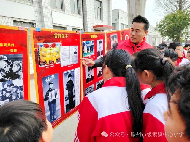 活动中,滕州市学雷锋志愿者联合会副会长王海军深情讲述了雷锋同志的成长历程与感人事迹,深刻阐释雷锋精神的时代内涵,结合新时代青少年成长特点,引导广大少年儿童传承雷锋精神,践行初心使命。同时,向同学们提出殷切期望,号召大家听党话、感党恩、跟党走,从身边小事做起,争做新时代“小雷锋”。鲜活的事例、真挚的情感深深打动在场每一位师生。随后,师生共同观看雷锋事迹展,进一步感悟榜样力量。
