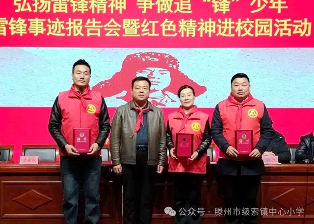 本次活动对校园学雷锋志愿服务活动中表现突出的先进个人与集体予以表扬,滕州市学雷锋志愿者联合会、滕州市荆西书店为学校师生捐赠书籍300余册,丰富校园文化资源,助力青少年红色阅读与成长;活动还聘请志愿者联合会相关同志担任学校校外辅导员,搭建起镇级、社会组织、学校三方联动的德育教育平台,为持续开展红色教育、弘扬雷锋精神筑牢根基。