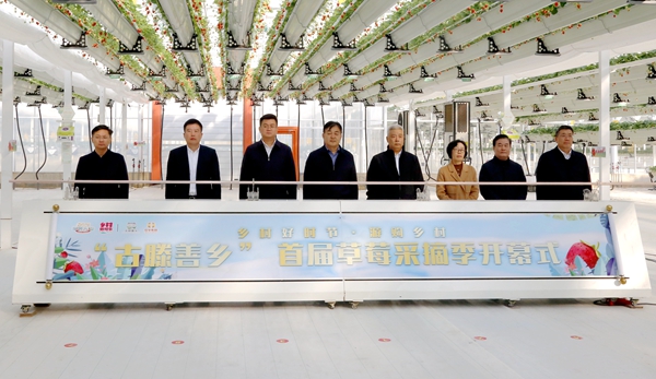 农文旅融合绘新卷,采摘欢歌庆丰年。12月5日,乡村好时节·游购乡村——“古滕善乡”首届草莓采摘季开幕式在滕州市省级现代农业产业园隆重举行。山东省农业科学院党委委员、副院长刘开昌,山东农业大学乡村振兴学院院长张舒等省农科院、山农大专家学者;滕州市委副书记、统战部部长程亮,市人大常委会副主任孔凡华,市政府党组成员、副市长徐方坤,市政协副主席黄玉传,姜屯镇党委书记马骉,滕州信华投资集团有限公司董事长孙卓安等领导嘉宾;市直相关部门分管负责人、各镇(街)副书记;姜屯镇副科级以上领导干部及各村支部书记、企业代表、草莓种植大户参加活动。活动以草莓为媒、以节会友,搭建起农文旅融合发展桥梁,奏响了城乡互动、消费赋能的乡村振兴新乐章。
