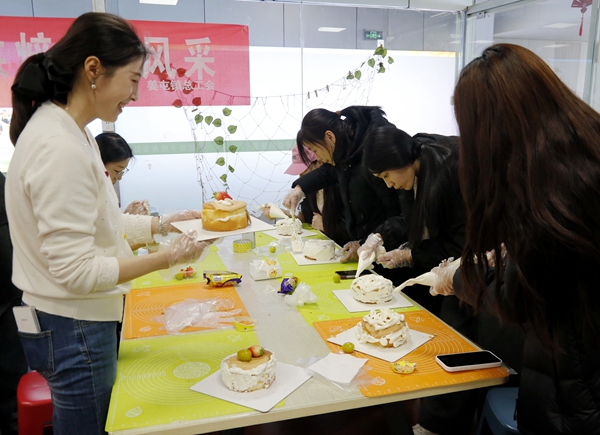 活动现场,专业烘焙师现场教学,女职工们围坐在一起,手持抹刀,发挥创意与巧思,将香甜的奶油精心涂抹在蛋糕胚上,再点缀以新鲜水果和精致糖珠。现场欢声笑语不断,大家互相切磋技巧、分享创意,原本普通的蛋糕胚,在一双双巧手下变成了各具特色的甜蜜艺术品。