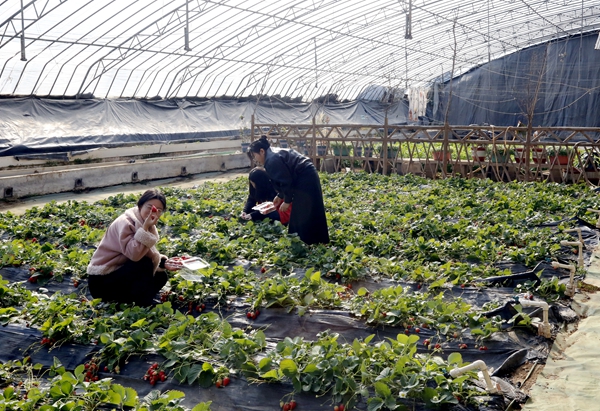 午后的田园时光同样精彩,正德康城的草莓大棚里绿意盎然,一颗颗饱满红润的草莓掩映在绿叶间,果香四溢。大家手提采摘篮,穿梭在垄间,弯腰俯身、轻摘慢放,一边挑选着心仪的草莓,一边拍照留念,记录下这充满田园乐趣的美好瞬间。