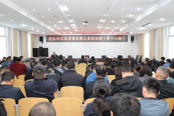 为进一步凝聚思想共识,汇聚奋进力量,持续加强干部队伍建设、提升履职能力,10月13日上午,龙泉街道举办高质量发展大家谈活动(第十八期)。全体领导干部,全体机关干部,各片区党委书记、主任,各社区党委书记,各村党支部书记,各小区党支部书记或网格长参加活动。