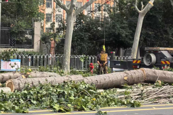 安全无小事,隐患即事故。为尽快消除风险、守护居民安全,社区第一时间启动应急响应,迅速对接专业施工团队,邀请技术人员到现场实地勘察评估,最终决定对“危树”实施砍伐。施工人员携带专业砍伐设备,按照预先制定的作业方案,先清理树木周边杂物,再登上作业平台,分段砍伐树干、修剪枝条。施工中,社区工作人员密切关注现场情况,及时劝离围观群众及过往车辆,引导大家保持安全距离。经过数小时协同作业,所有“危树”均被安全清理,周边安全隐患彻底消除。