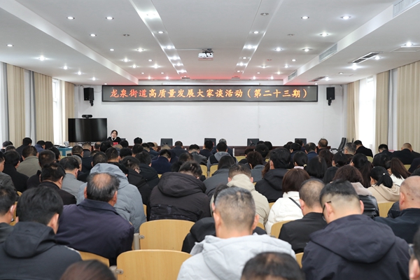 为进一步激发干部履职担当、干事创业的积极性、主动性、创造性,11月17日上午,龙泉街道举办高质量发展大家谈活动(第二十三期)。全体领导干部,全体机关干部,各片区党委书记、主任,各社区党委书记,各村党支部书记,各小区党支部书记或网格长参加活动。