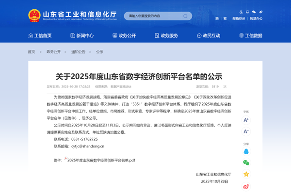 据了解,数字经济创新平台是山东省数字经济发展创新体系的重要一环,核心职责是围绕全省数字经济规划布局,着力提升全省数字产业科技创新能力,推动数字技术与实体经济深度融合。