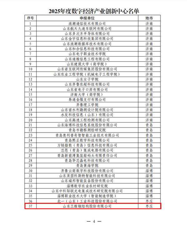近日,省工信厅公布2025年度山东省数字经济创新平台名单,龙泉街道企业山东三维钢结构股份有限公司、山东沃达重工机床有限公司成功入选数字经济产业创新中心。