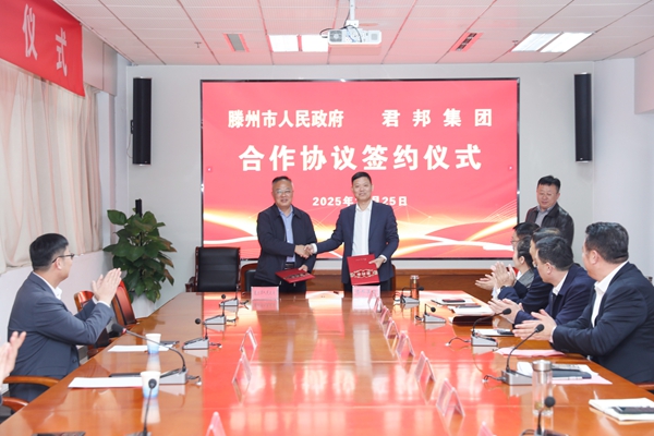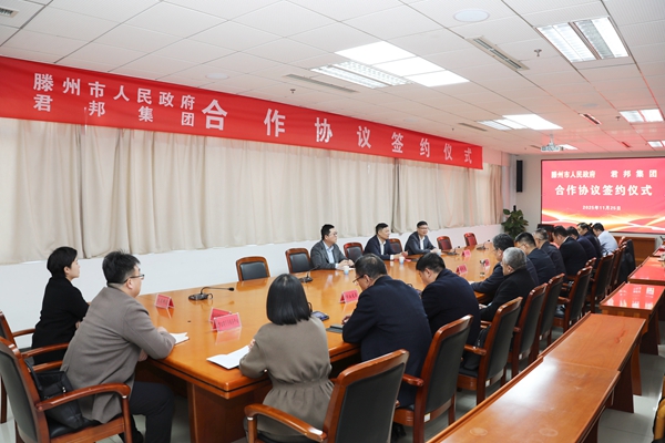 11月25日上午,滕州市人民政府、君邦集团合作协议签约仪式举行。君邦集团董事长吴部学,君邦集团副总经理、山东君邦高新材料科技有限公司总经理王依志,君邦集团财务总监周成;滕州市政府党组成员、副市长马金安,滕州微山湖湿地管委会主任、东沙河街道党工委书记杨青霖,市直相关部门负责人;龙泉街道党工委书记党琪,党工委副书记、办事处主任张维维,办事处副主任褚瑞,便民服务中心主任梁栋,经济发展办公室副主任牛广浩,相关部门、工作岗负责人参加活动。