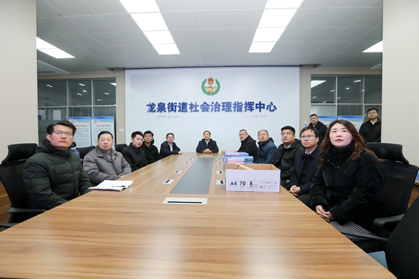 冯海洋一行实地到龙泉街道综治中心,通过现场察看、听取汇报、查阅资料、系统核验、座谈交流等方式,详细了解了综治中心功能布局、机制运行、力量整合、设施配备和矛盾纠纷多元化解工作开展情况,对龙泉街道综治中心规范化建设的标准化流程、精细化服务、数字化赋能给予高度评价。