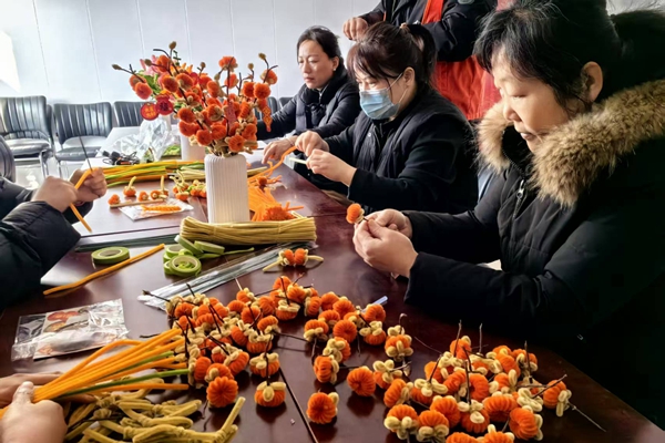 在永昌社区,扭扭棒手工花制作现场,同样暖意融融。五颜六色的扭扭棒在居民们的手中弯折、缠绕、造型,大家互相交流技巧、分享创意,一朵朵精致可爱的郁金香、玫瑰、向日葵陆续“绽放”。手工花制作既锻炼了动手能力,又增添了节日乐趣,大家捧着自己制作的创意花束拍照留念,现场欢声笑语不断,洋溢着浓郁的节日气息。