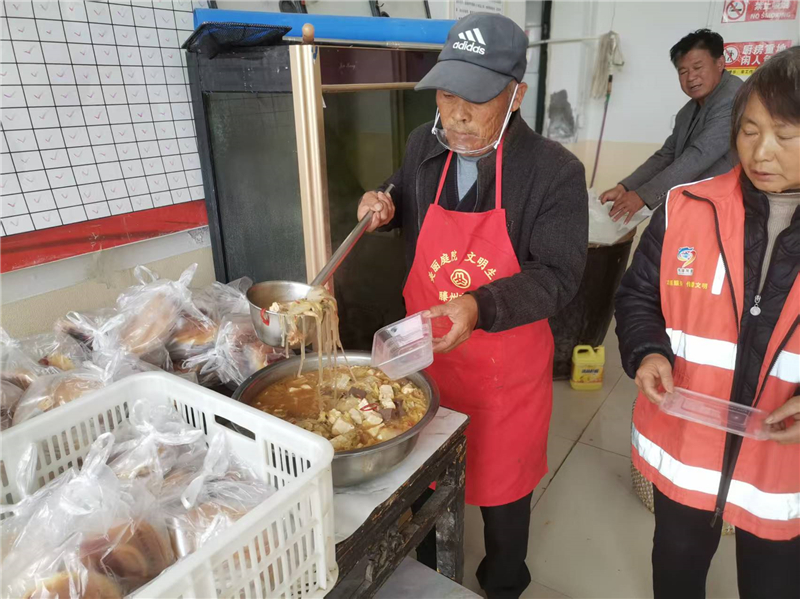 一走进食堂,饭菜的香气便扑鼻而来。目光所及,是志愿者们精心准备的各式菜品:软糯的面包、皮薄馅足的手工大包子、低盐少油的白菜豆腐炖猪肉……每一道菜品都经过营养配比,既保证口感软烂易消化,又富含蛋白质、维生素等多种营养元素,让老人们吃得安心、吃得健康。