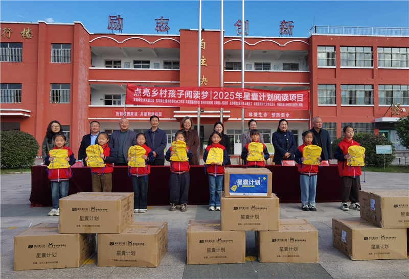 活动现场,326套精心准备的“星囊阅读包”正式移交至龙山屯小学。打开星囊,不仅有涵盖文学名著、科普探索、历史故事、成长励志等多领域的精选图书,更搭配了趣味手工材料与别致星囊卡,兼具知识性与互动性,瞬间点燃了孩子们的好奇心。为让图书资源持续发挥育人实效,活动创新推出“图书漂流”模式,供全校学生循环借阅,让知识在孩子们之间流动传递,既有效拓宽了乡村儿童的阅读视野,也最大化发挥了每一本图书的育人价值。捐赠仪式后,孩子们迫不及待地围坐在一起,手捧新书沉浸在知识的海洋里,共同享受阅读带来的乐趣。