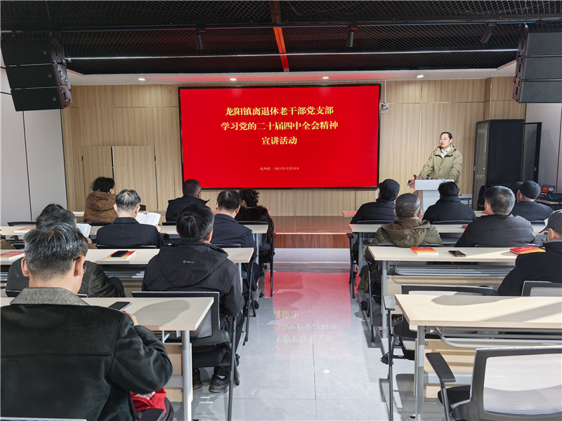 12月24日上午,龙阳镇组织离退休老干部开展党的二十届四中全会精神宣讲活动,离退休老干部董学军同志担任宣讲人。