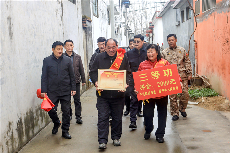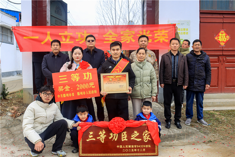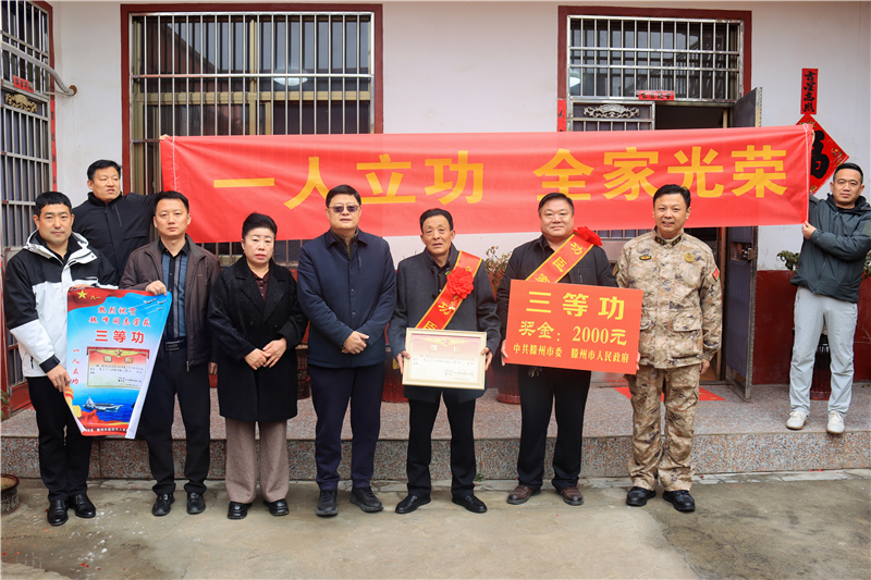 3月5日,滕州市退役军人事务局党组成员、市退役军人服务中心主任韦永水,市退役军人事务局服务中心副主任郭焱一行来龙阳镇,为荣立三等功的魏峰、林森、赵森三名现役军人家庭送去立功喜报,将党和政府的关怀与温暖送到军属心坎上。龙阳镇党委委员、武装部长、统战委员张静及相关部门负责人参加活动。